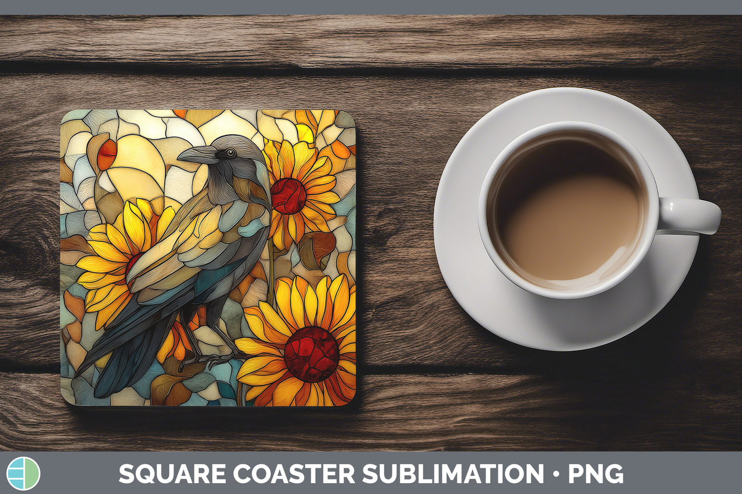 Similar Design Products to Crow Square Coaster Birds 01 Stained Glass Sunflower Sublima