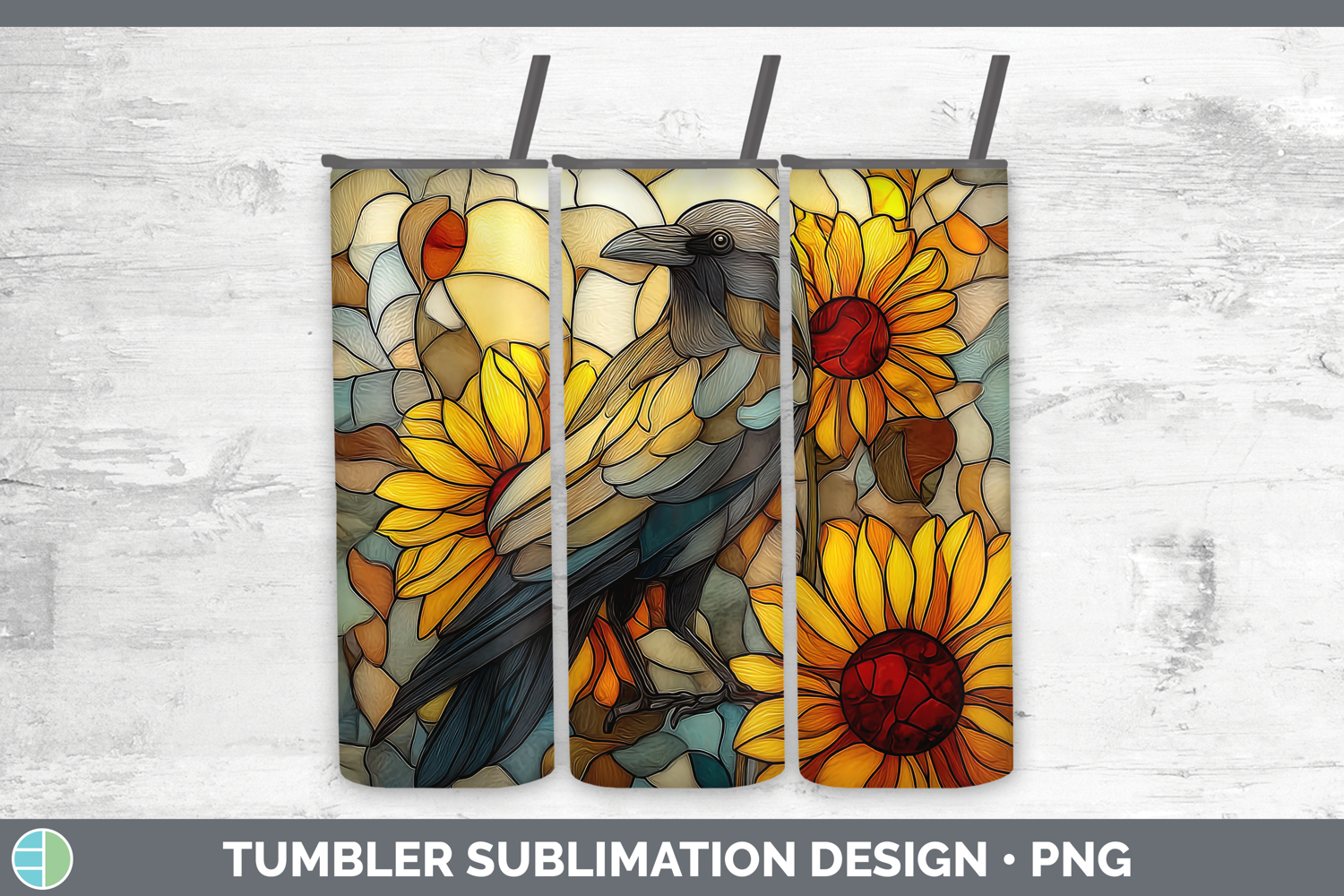 Crow Tumbler Birds 01 Stained Glass Sunflower Sublimation 20