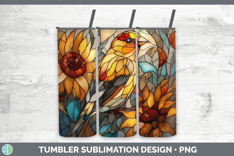 Similar Design Products to Goldfinch Tumbler Birds 01 Stained Glass Sunflower Sublimati