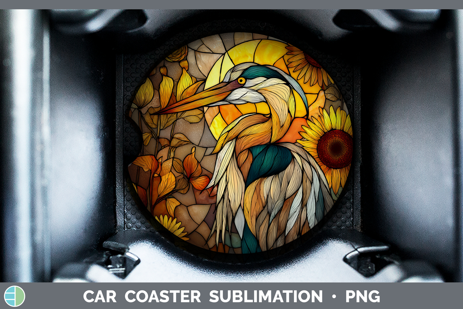 Great Blue Heron Car Coaster Birds 01 Stained Glass Sunflowe