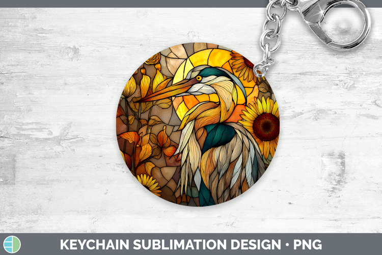 Great Blue Heron Keychain Birds 01 Stained Glass Sunflower S