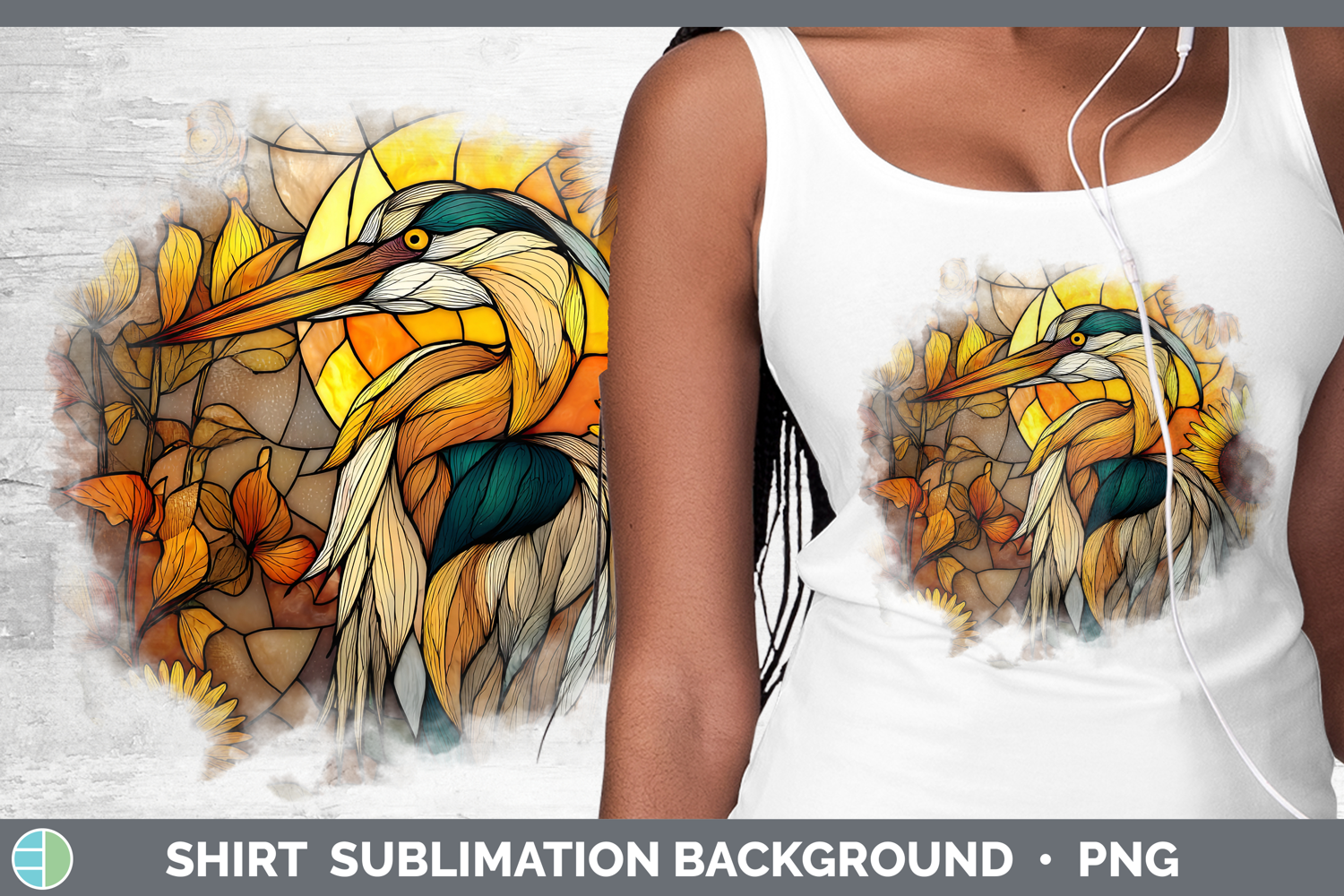 Great Blue Heron Shirt Birds 01 Stained Glass Sunflower Subl