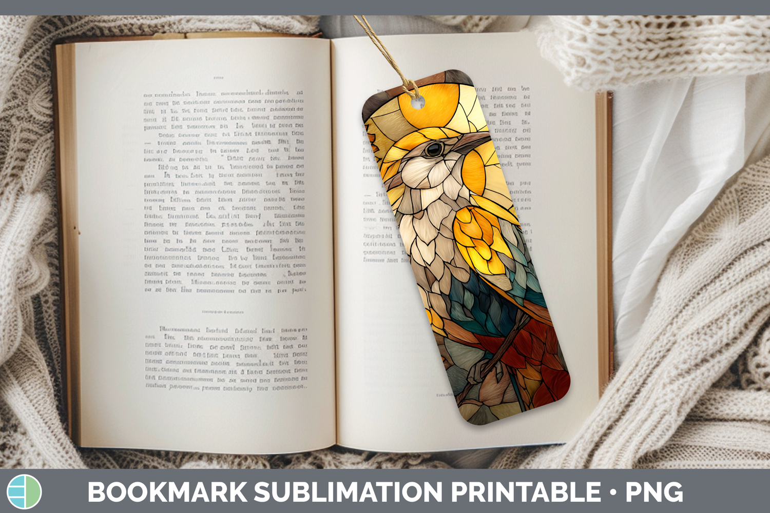 Mockingbird Bookmark Birds 01 Stained Glass Sunflower Sublim
