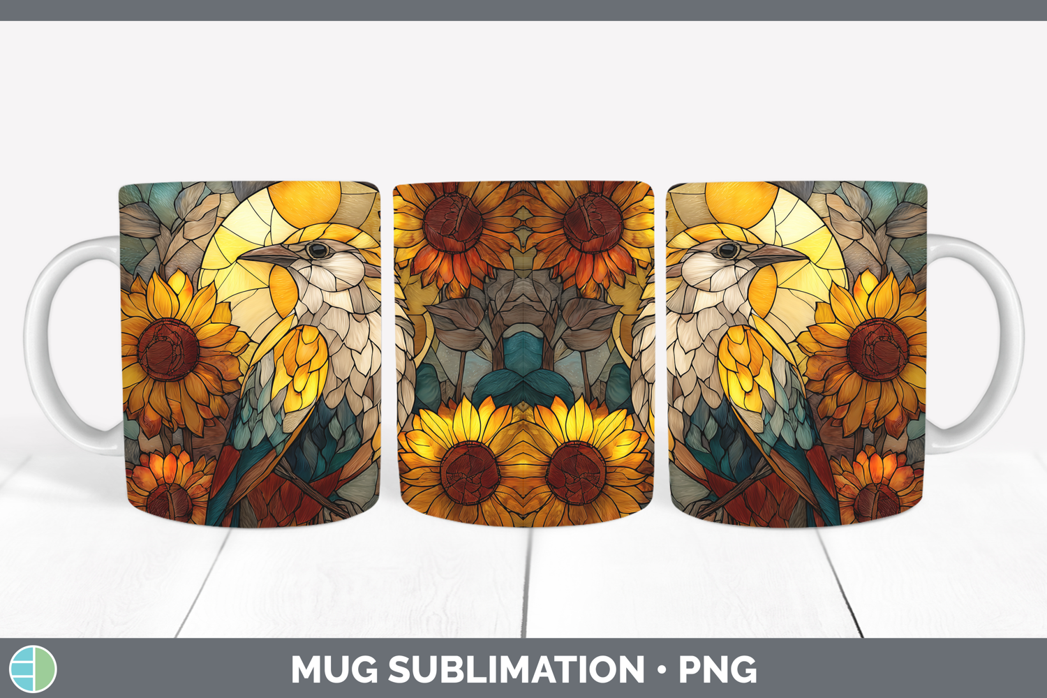 Similar Design Products to Mockingbird Mug Wrap Birds 01 Stained Glass Sunflower Sublim