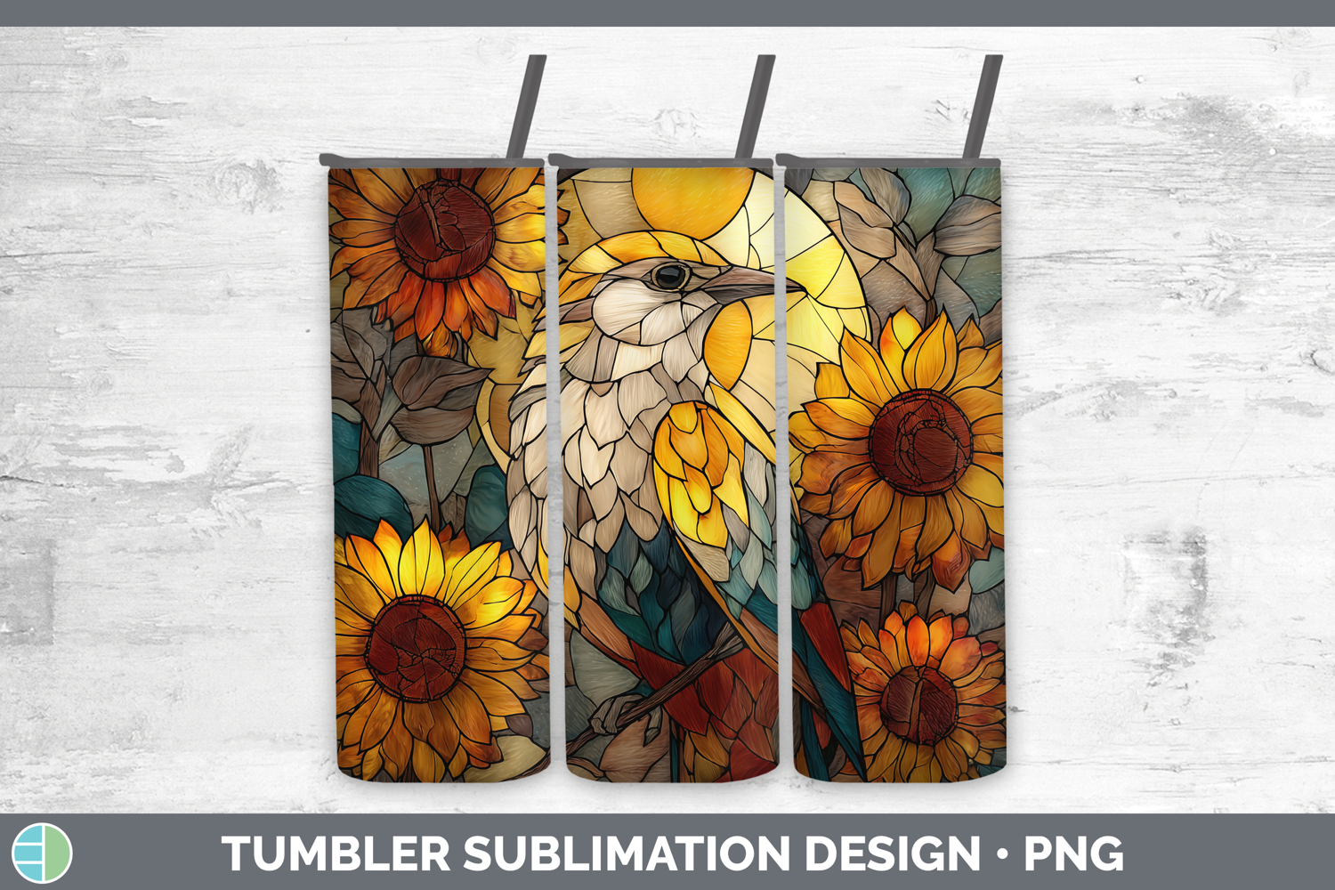 Mockingbird Tumbler Birds 01 Stained Glass Sunflower Sublima