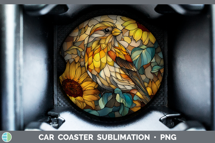GorgeousBirds 01 Stained Glass Sunflower Car Coaster design.