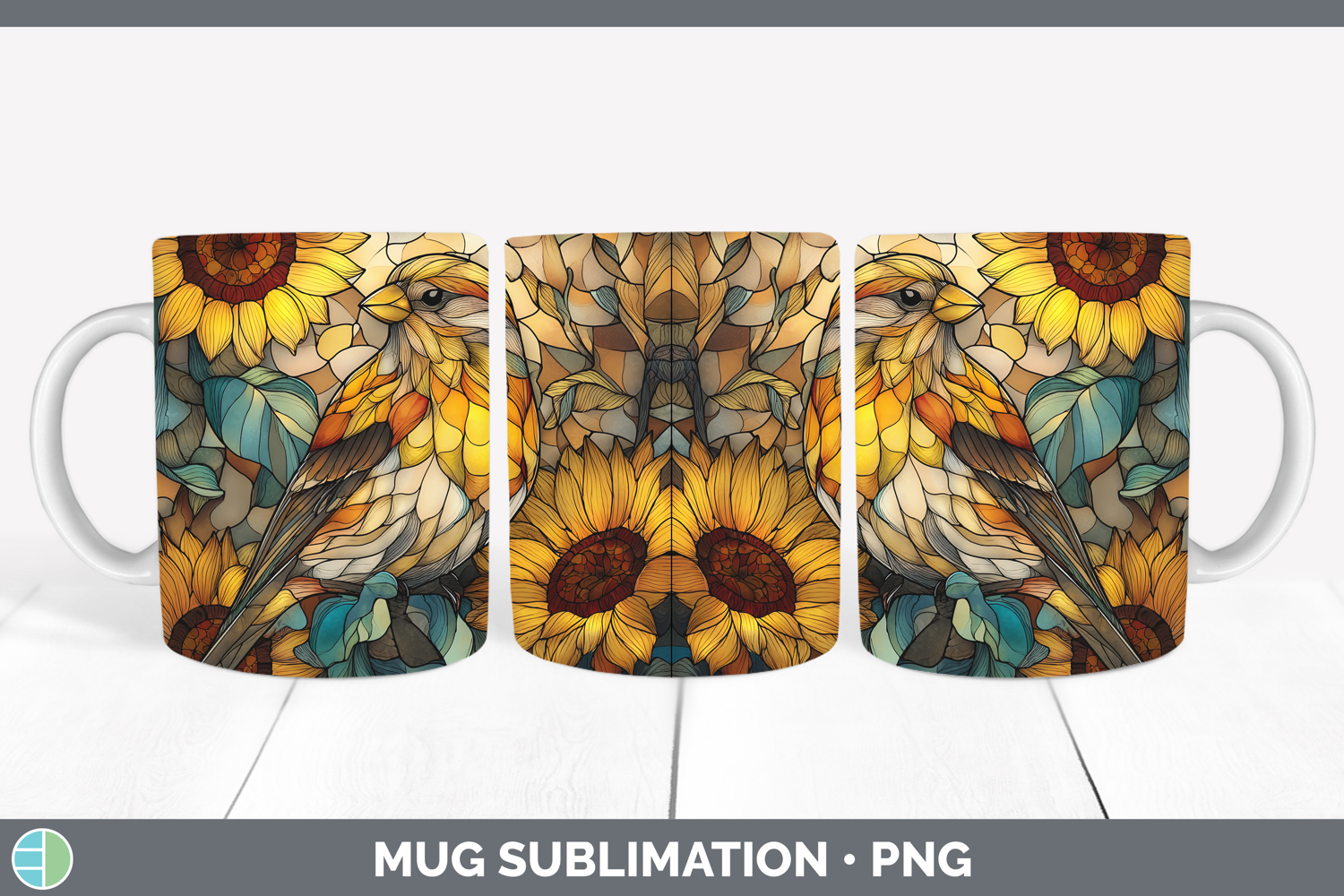 GorgeousBirds 01 Stained Glass Sunflower Mug Wrap design.