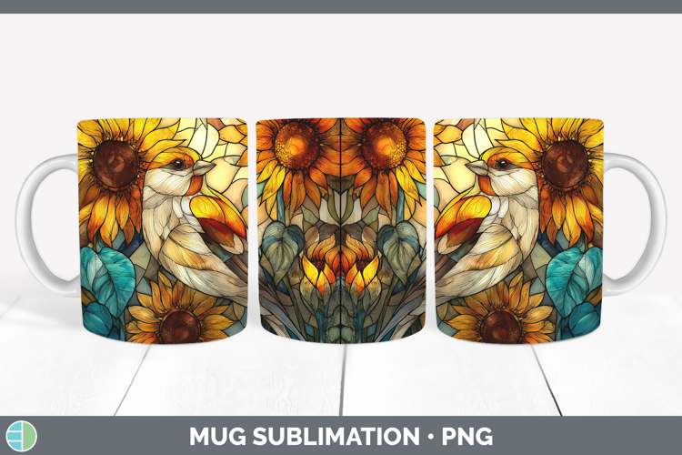 Similar Design Products to Snow Bunting Mug Wrap Birds 01 Stained Glass Sunflower Subli