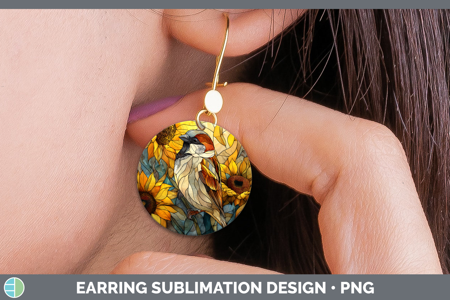 Similar Design Products to Sparrow Round Earrings Birds 01 Stained Glass Sunflower Subl