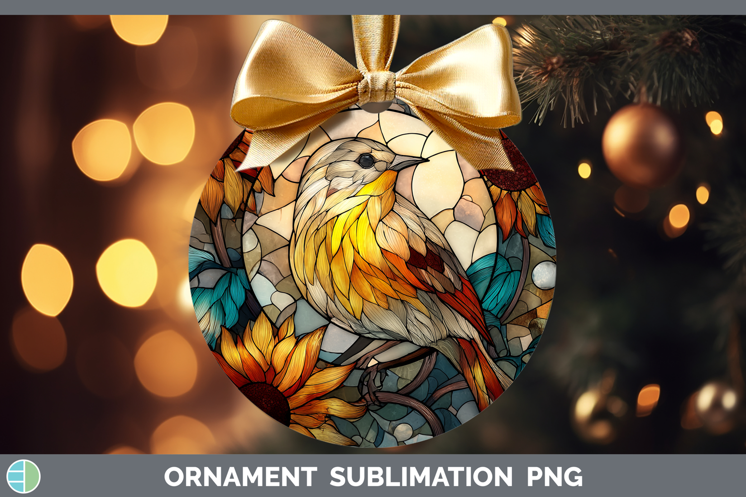 Warbler Ornament Birds 01 Stained Glass Sunflower Sublimatio