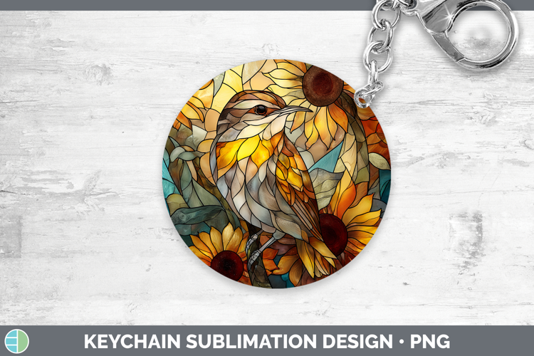 Wren Keychain Birds 01 Stained Glass Sunflower Sublimation K