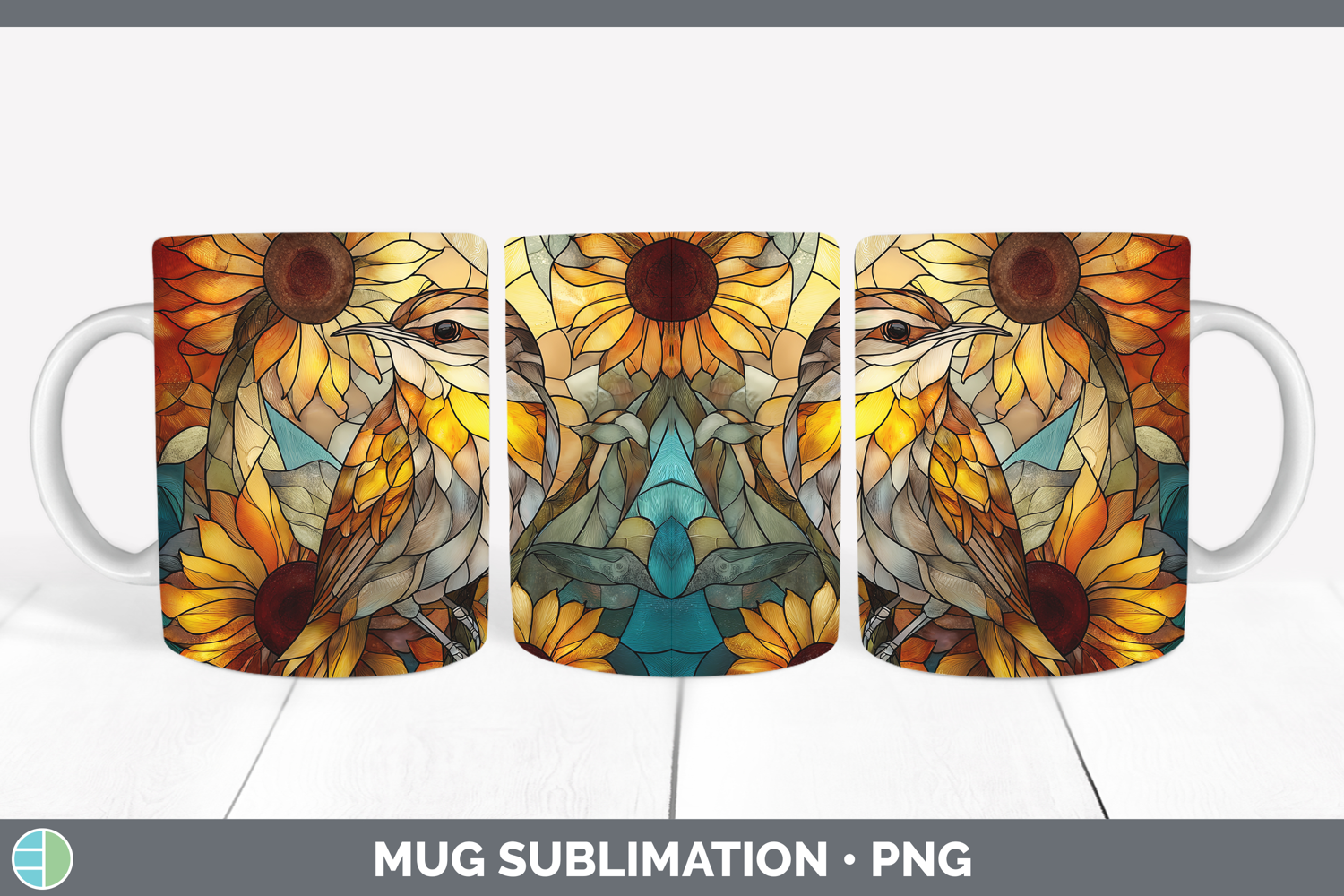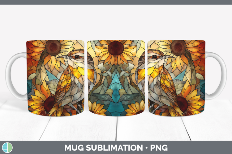 Wren Mug Wrap Birds 01 Stained Glass Sunflower Sublimation C