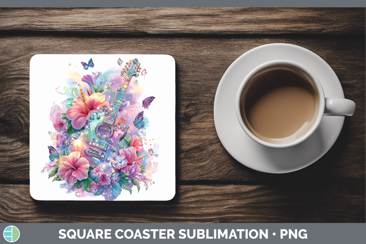 Guitar Square Coaster Best Sellers 08 Rainbow Summer Sublima