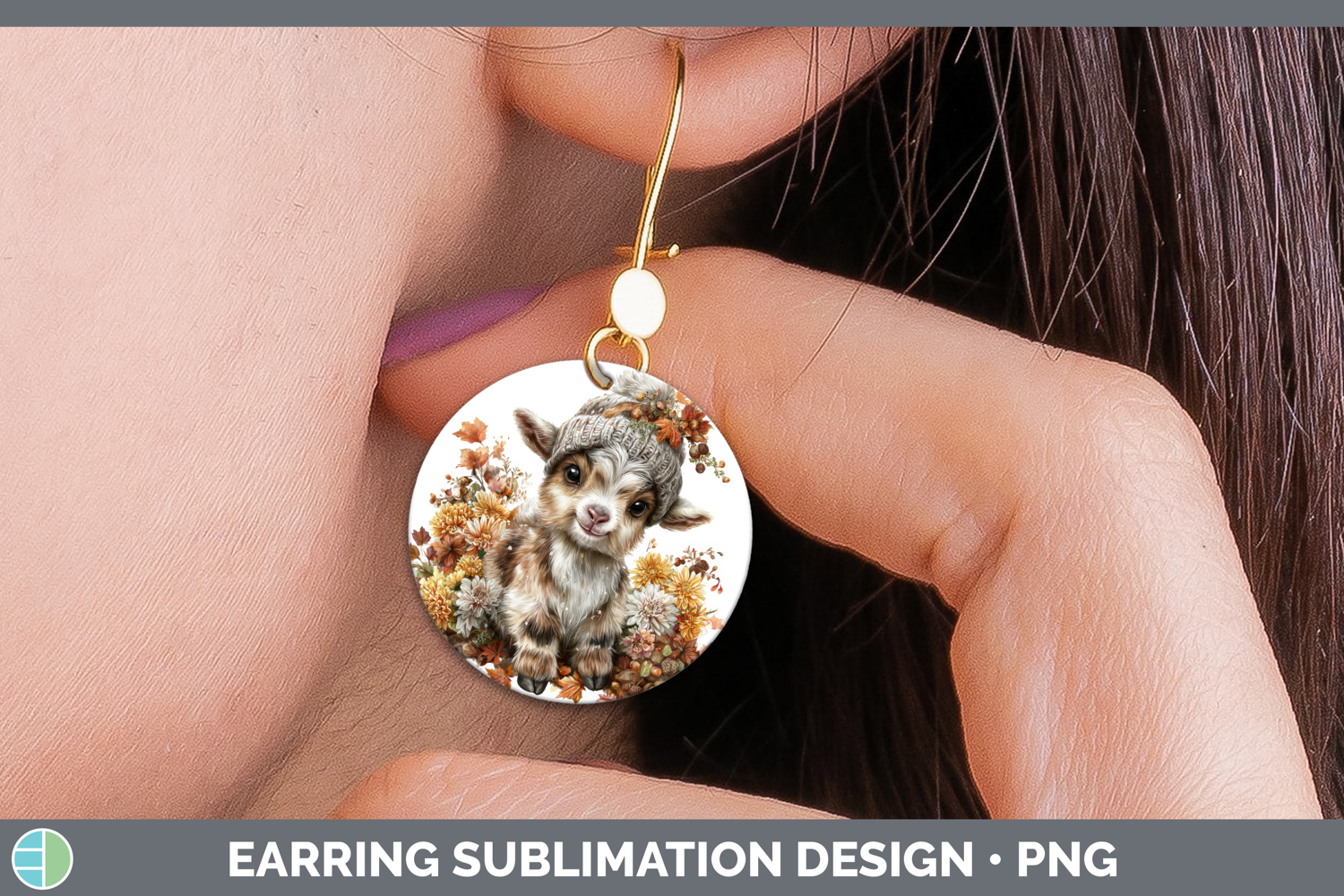 Similar Design Products to Goat Round Earrings Farm Knit Hat Sublimation Earrings Desig