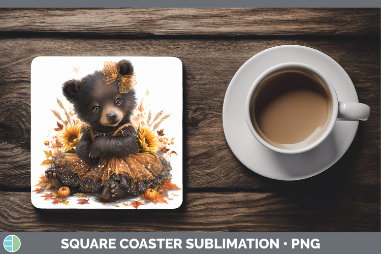 Black Bear Square Coaster Woodland Cute Thanksgiving Sublima