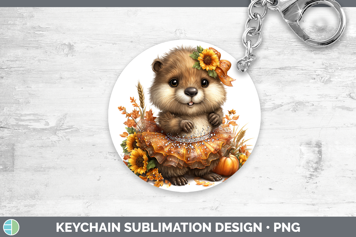 Beaver Keychain Woodland Cute Thanksgiving Sublimation Keyri