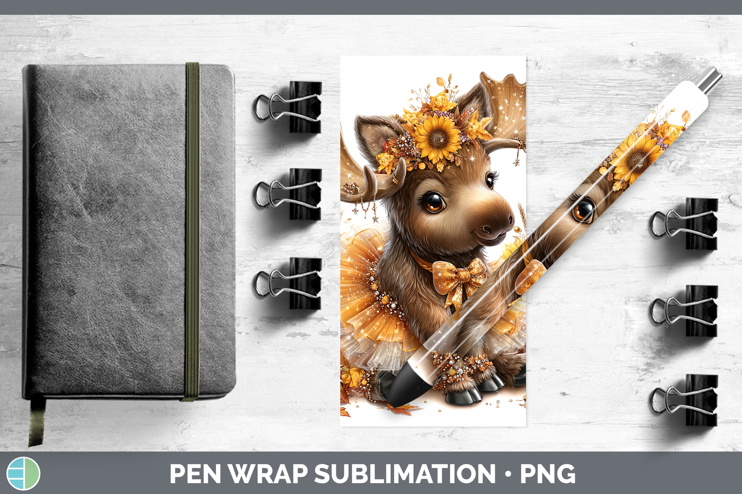 Moose Pen Wrap Woodland Cute Thanksgiving Sublimation Pen De