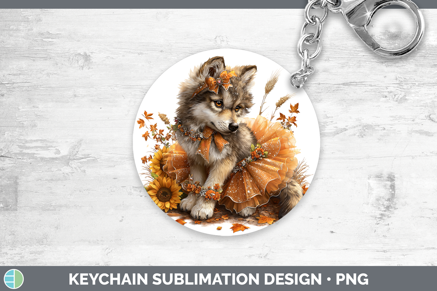 Wolf Keychain Woodland Cute Thanksgiving Sublimation Keyring
