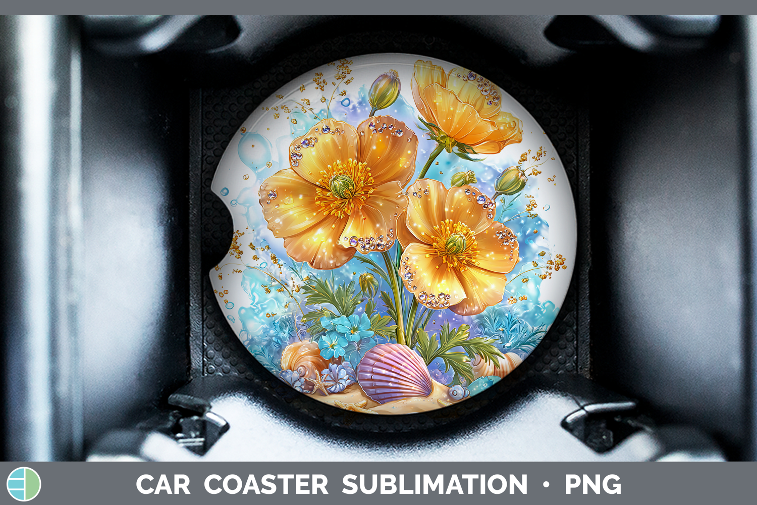 Buttercup Car Coaster Flowers 01 Beach Sublimation Designs