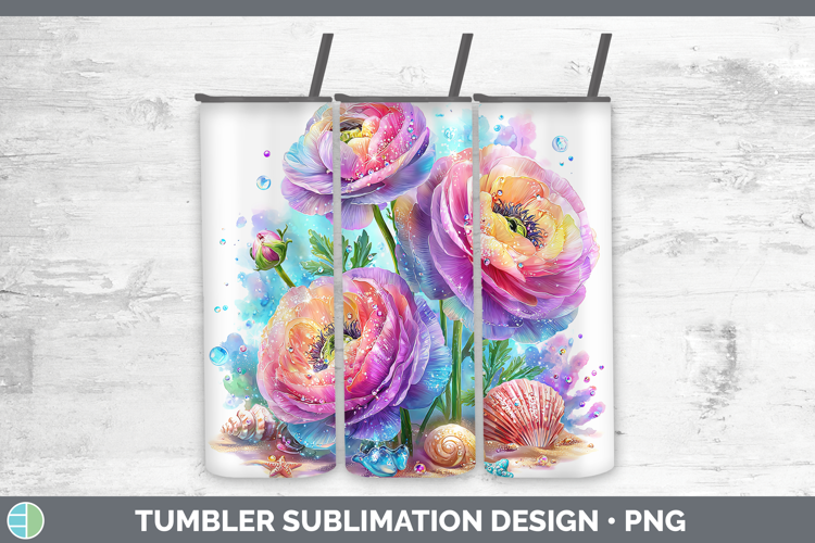 Ranunculus Tumbler Flowers 01 Beach Sublimation 20 oz Skinny