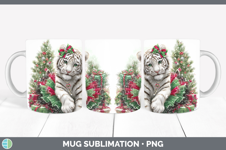 White Tiger Mug Wrap Wild Cats Cute Christmas Sublimation Co