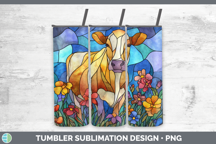 Cow Tumbler Farm Stained Glass Flowers Sublimation 20 oz Ski