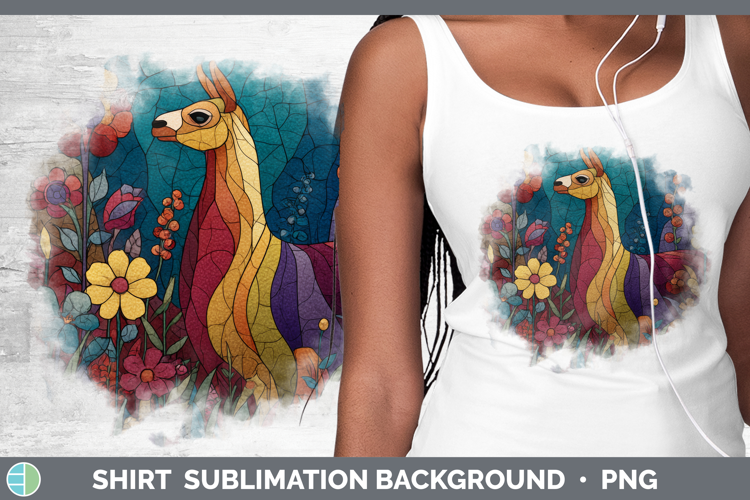 LLama Shirt Farm Stained Glass Flowers Sublimation Backgroun