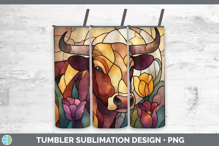 Bull Tumbler Farm Stained Glass Flowers Sublimation 20 oz Sk