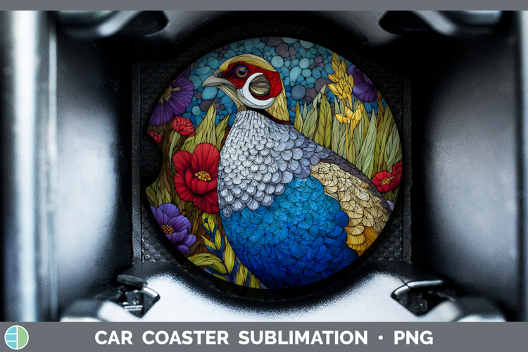 Guinea Hen Car Coaster Farm Stained Glass Flowers Sublimatio