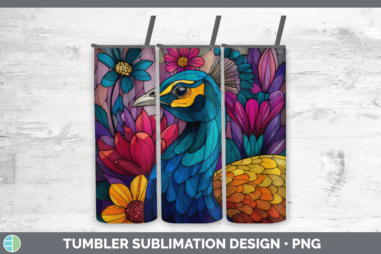 Similar Design Products to Peacock Tumbler Farm Stained Glass Flowers Sublimation 20 oz