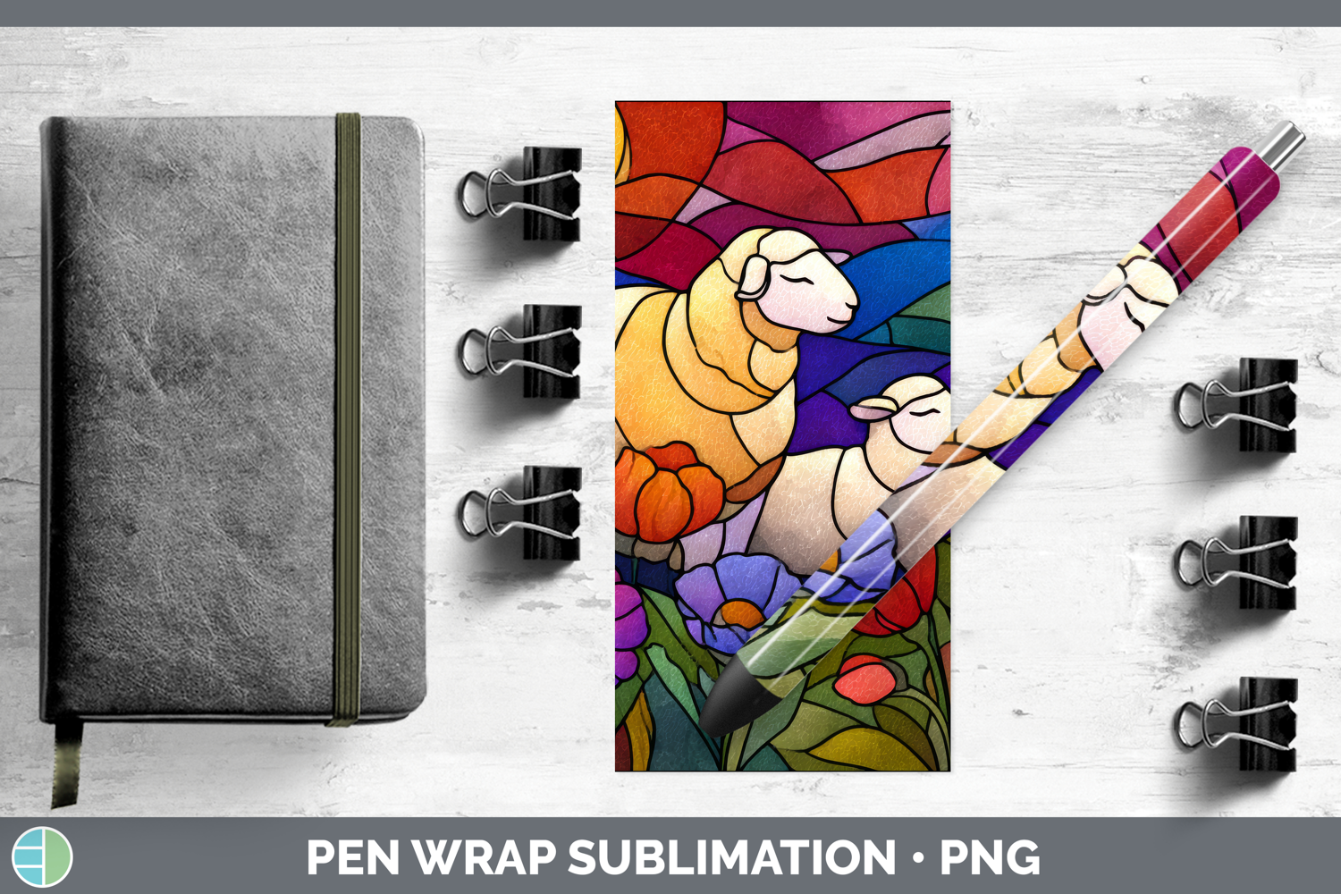 Sheep Pen Wrap Farm Stained Glass Flowers Sublimation Pen De