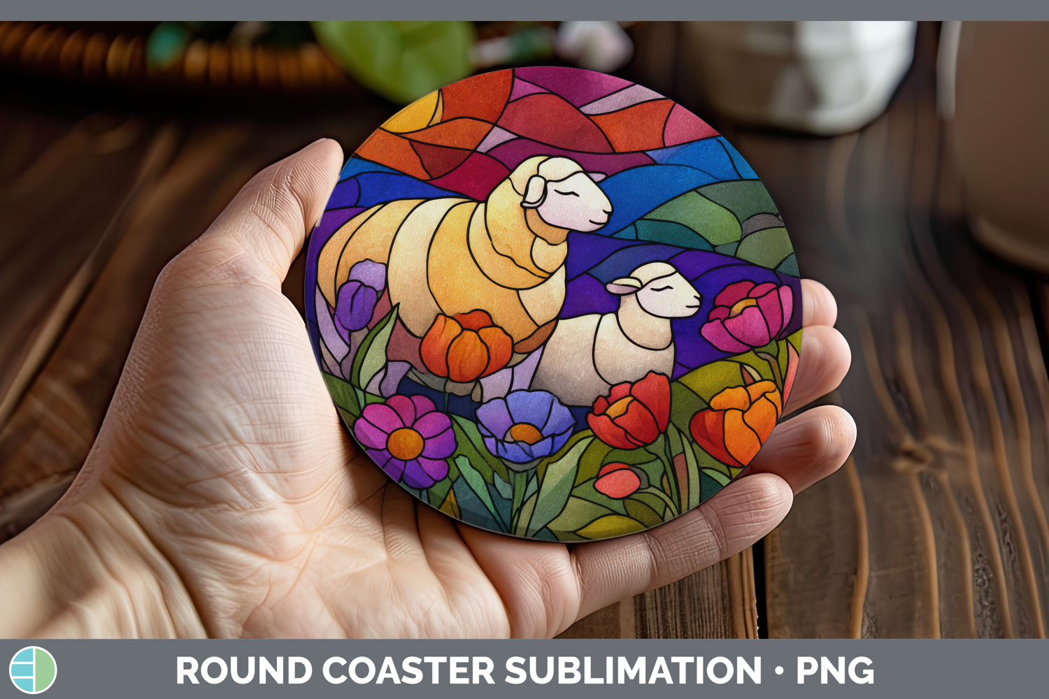 Sheep Round Coaster Farm Stained Glass Flowers Sublimation C