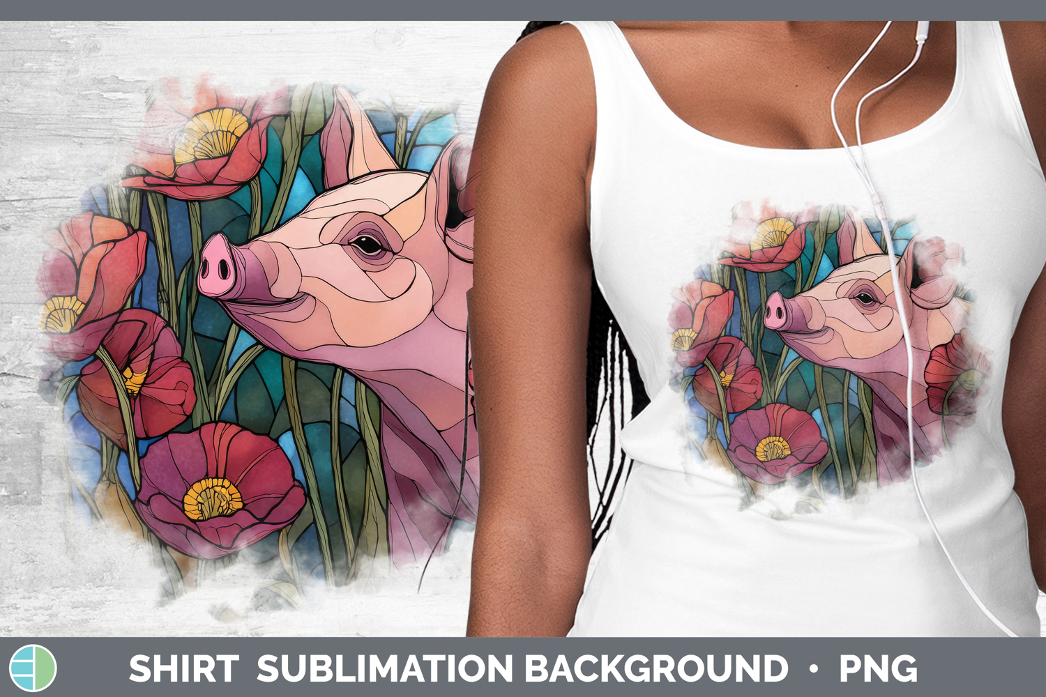 Pig Shirt Farm Stained Glass Flowers Sublimation Background