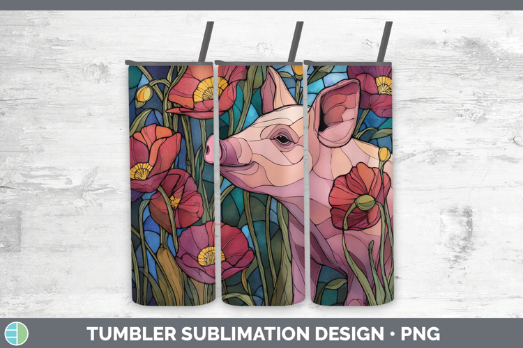 Pig Tumbler Farm Stained Glass Flowers Sublimation 20 oz Ski