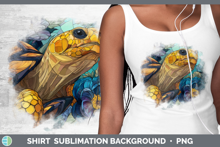 Tortoise Shirt Farm Stained Glass Flowers Sublimation Backgr