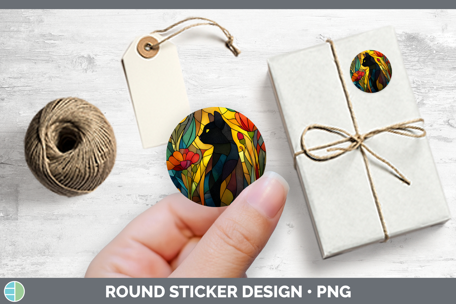 Cats Stained Glass Wild Flowers Black Cat Stickers | Round L