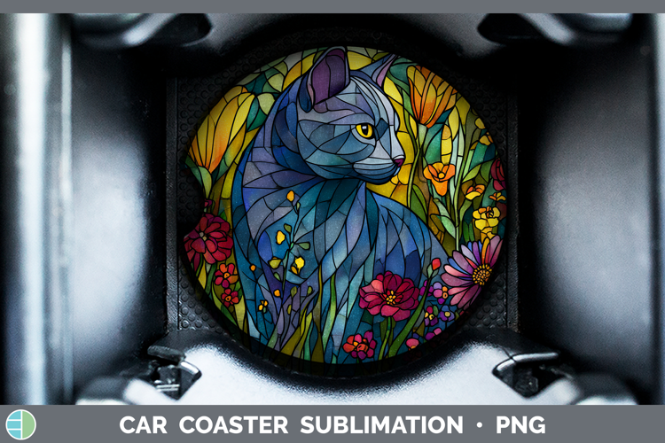 Similar Design Products to Russian Blue Cat Car Coaster Cats Stained Glass Wild Flowers
