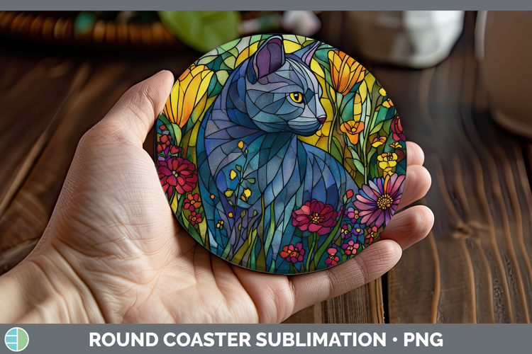 Similar Design Products to Russian Blue Cat Round Coaster Cats Stained Glass Wild Flowe
