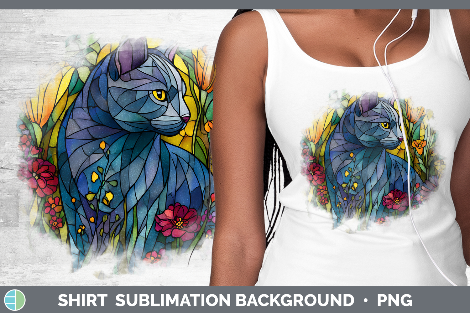 Russian Blue Cat Shirt Cats Stained Glass Wild Flowers Subli