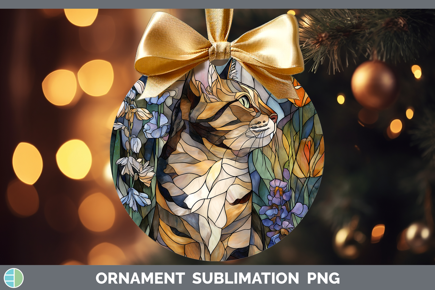 Tabby Cat Ornament Cats Stained Glass Wild Flowers Sublimati