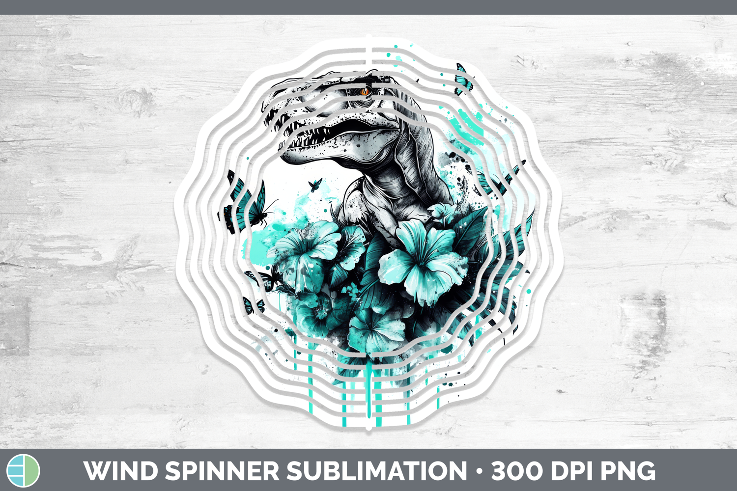 Dinosaur Wind Spinner Animals Teal Drips Sublimation Spinner