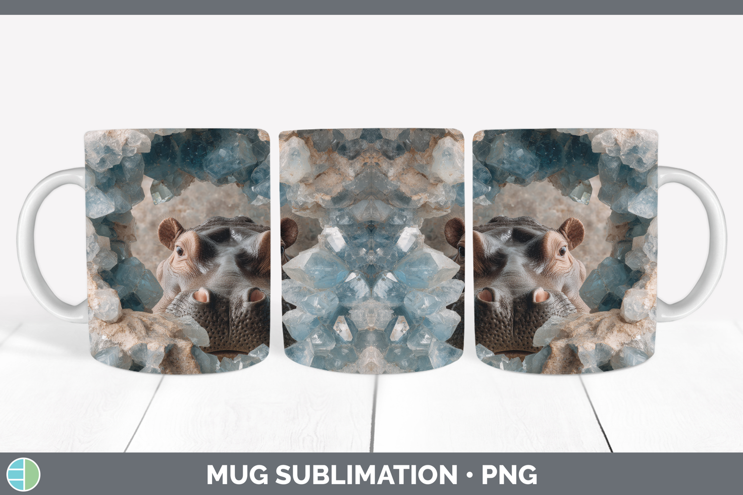 Hippo Mug Wrap Safari Geode Wall Sublimation Coffee Cup Desi