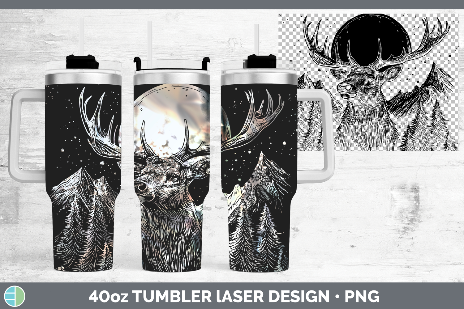 Elk Laser 40oz Tumbler Woodland Mountain Moon Sublimation Tu
