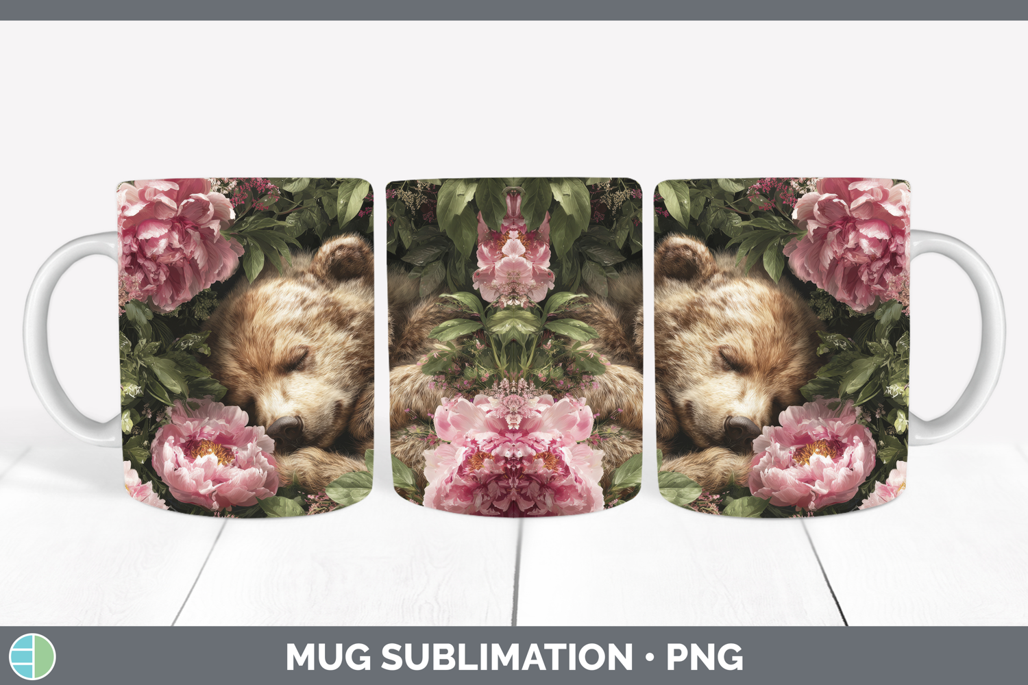 Bear Mug Wrap Animals Floral Sleeping Sublimation Coffee Cup