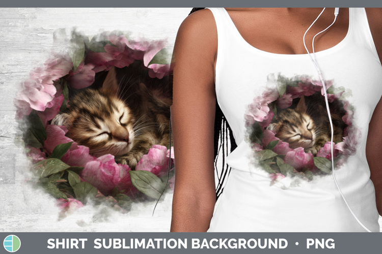 Kitten Shirt Animals Floral Sleeping Sublimation Background