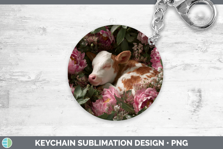 Cow Keychain Animals Floral Sleeping Sublimation Keyring Des