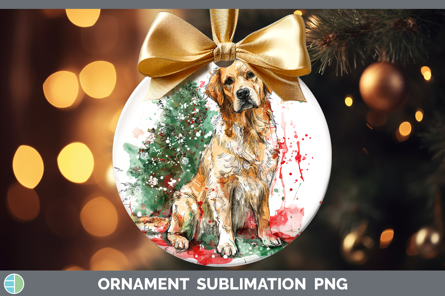 Golden Retriever Ornament Dogs 01 Splash Christmas Sublimati
