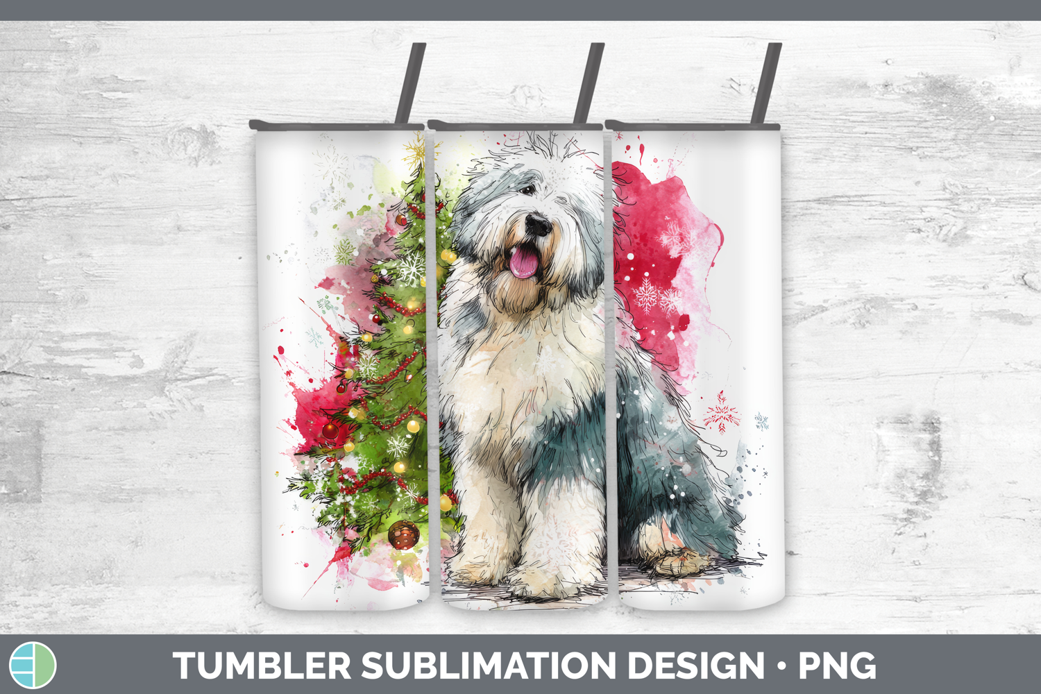 Old English Sheepdog Tumbler Dogs 01 Splash Christmas Sublim