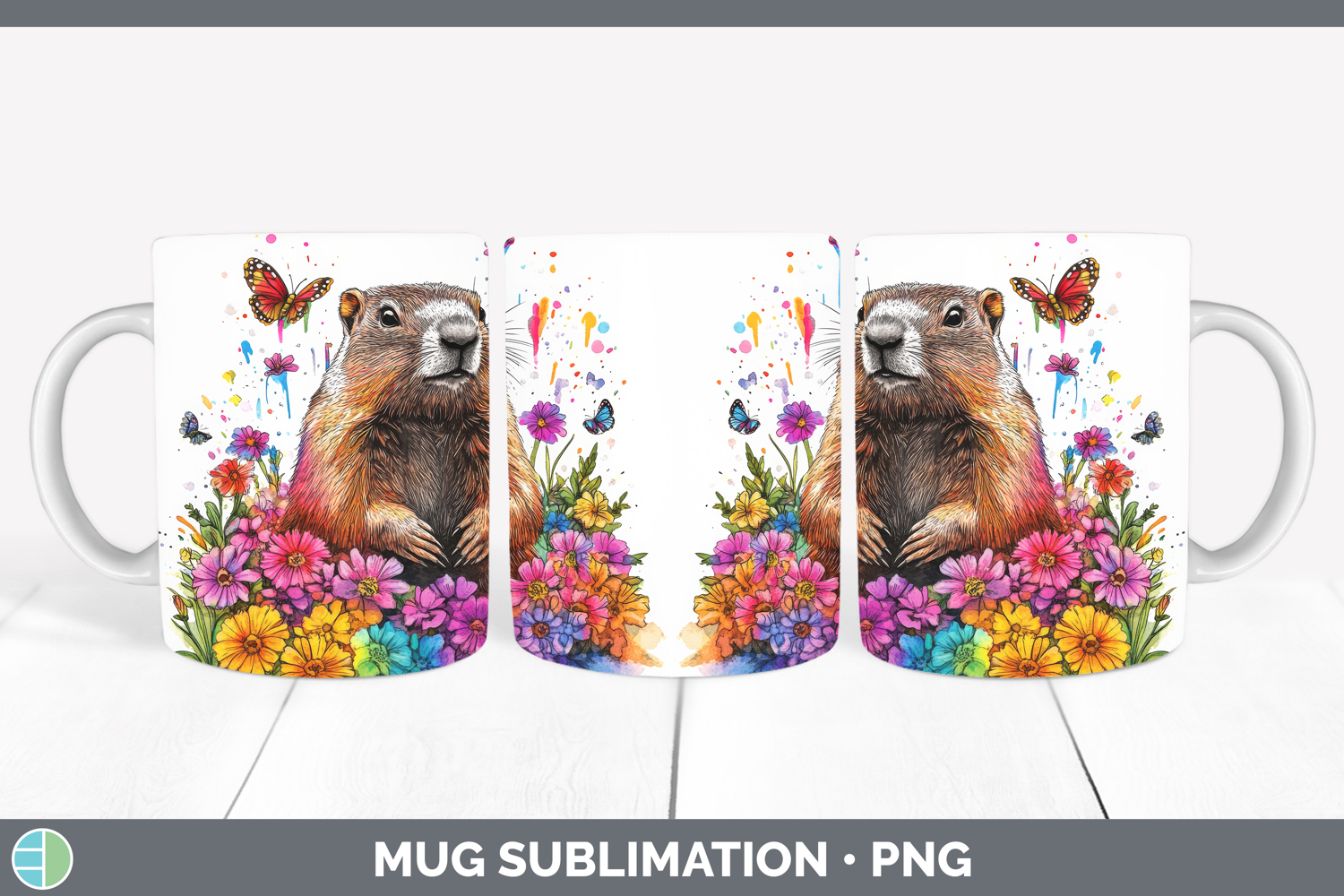 Groundhog Mug Wrap Woodland Rainbow Splash Sublimation Coffe