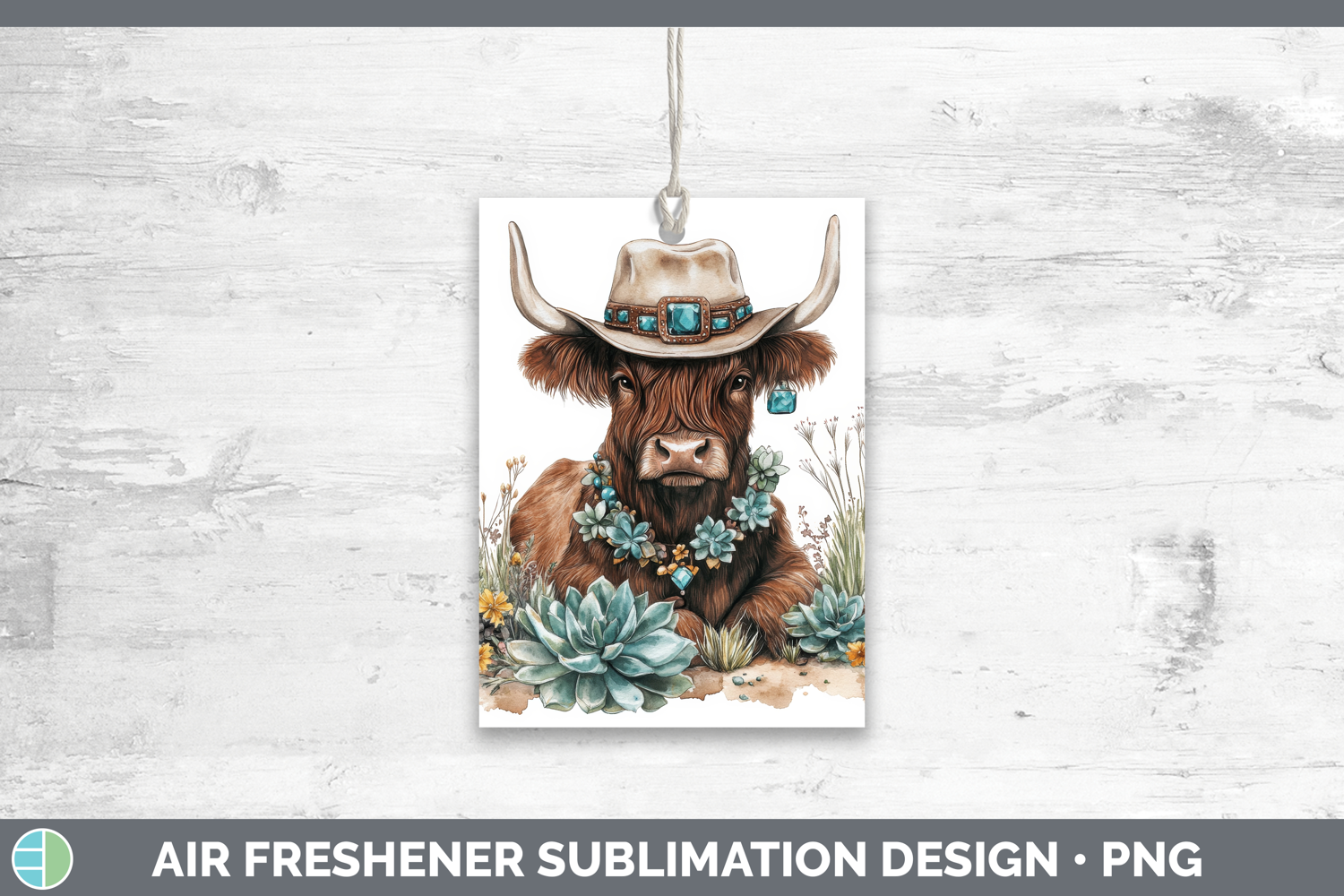 Highland Cow Air Freshener Farm Western Teal Sublimation Car